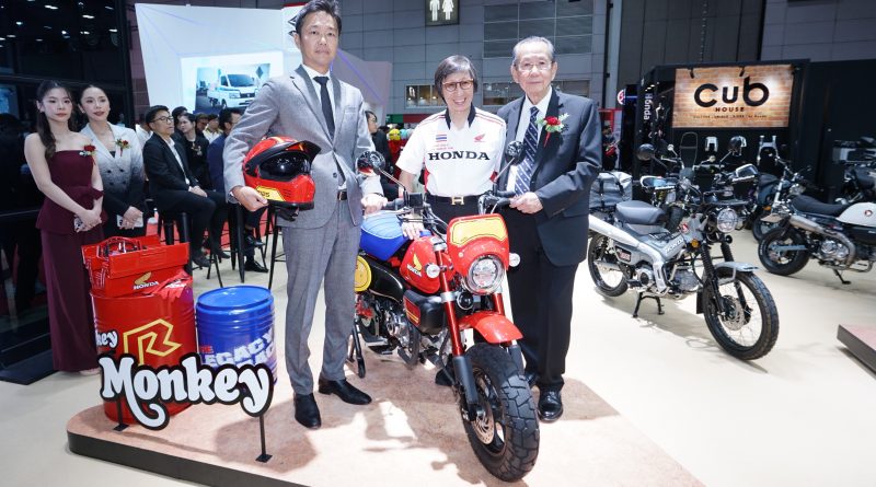 2 ผู้บริหาร ไทยฮอนด้า ดร.อารักษ์ พรประภา ประธาน และ มร.โทชิอากิ ทานากะ กรรมการบริหาร ต้อนรับ จรวย ขันมณี ประธานจัดงาน BIG MOTOR SALE ที่โชว์รูมมอเตอร์ไซค์ HONDA ในงาน BIG MOTOR SALE 2024 พร้อมโชว์คัสตอมไบค์ตัวล่าสุด New HONDA Monkey Z125R Special Edition เจ้าลิงสุดซ่า ผสานกลิ่นอายความคลาสสิคกั