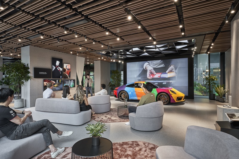 เพื่อการยกระดับส่งมอบประสบการณ์แก่ลูกค้า ปอร์เช่ สตูดิโอ สิงคโปร์ (Porsche Studio Singapore) นำเสนอแนวทางที่แตกต่างในการออกแบบร้านค้าปลีกยานยนต์ในประเทศสิงคโปร์ เริ่มต้นด้วยการตกแต่งภายในที่ทันสมัยพร้อมสัมผัสเอกลักษณ์ของประเทศสิงคโปร์ เช่น ลวดลายการออกแบบลักษณะ “breeze block” ที่ได้รับแรงบันดาลใจจากท้องถิ่นอันเก่าแก่ สถาปัตยกรรมและแผ่นไม้อัดที่ได้รับแรงบันดาลใจจากไม้ไผ่ประดับประดาไปทั่วพื้นที่ของสตูดิโอ