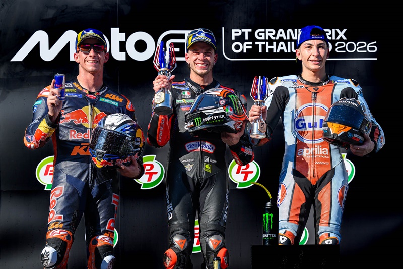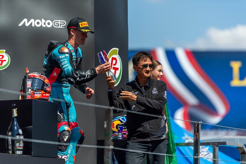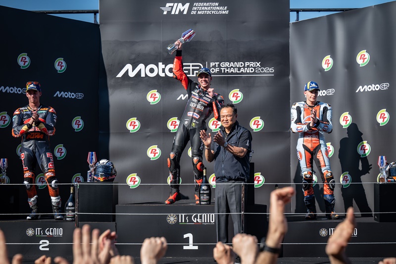 ศึกมอเตอร์สปอร์ตสองล้อเบอร์หนึ่งของโลก “โมโตจีพี” ดวลความเร็วสนามแรก ที่ประเทศไทย ภายใต้ชื่อรายการ “พีที กรังด์ปรีซ์ ออฟ ไทยแลนด์” กระหึ่มโลก ด้วยเกมสุดเร้าใจ มาร์โก เบซเซ็คคี ดาวบิดอิตาเลียนจาก อพริเลีย เรซซิ่ง แก้ตัวสำเร็จนำม้วนเดียวจบผงาดคว้าชัยประเดิมฤดูกาลใหม่เหนือ เปโดร อคอสต้า นักบิดสแปนิชจาก เคทีเอ็ม ขณะ มาร์ค มาร์เกซ แชมป์โลกคนปัจจุบันจาก ดูคาติ ดวงแตกยางระเบิดไม่จบเรซ โดยโมโตจีพี สนามประเทศไทยในครั้งนี้ เป็นปีที่ ทำลายสถิติ (Break Records ) ผู้ชมสูงสุดกว่าทุกปี จำนวนกว่า 228,228 คน