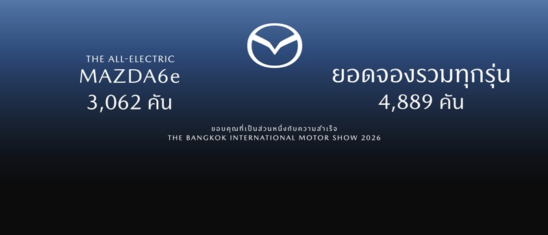 มาสด้าแรงไม่หยุดฉุดไม่อยู่คว้ายอดจองในงานมอเตอร์โชว์ทะลุเกือบ 4,900 คัน โดยเฉพาะยอดจองรถไฟฟ้า The All-Electric Mazda6e มาแรงสุด หลังจากเปิดตัวและเปิดราคาจำหน่ายในงานฯ โดนใจลูกค้าแบบเต็มๆ ส่งผลทำให้ยอดจองมาสด้าในปีนี้เติบโตเพิ่มขึ้นอย่างเห็นได้ชัด ท่ามกลางสมรภูมิการแข่งขันที่รุนแรงของตลาดรถยนต์ไทย ในขณะที่รถยนต์เครื่องยนต์สันดาปทุกรุ่นได้รับนิยมเช่นเดียวกัน อาทิ รถยนต์นั่งน้องเล็ก Mazda2 และรถครอสโอเวอร์เอสยูวี Mazda CX-30 และ Mazda CX-3 ก็ยังคงได้รับการตอบรับเป็นอย่างดีเช่นเคย และเพื่อเป็นการตอบรับต่อฟีดแบคและกระแสความสนใจของลูกค้าต่อยนตรกรรมไฟฟ้า The All-Electric Mazda6e มาสด้าเตรียมเดินสายโร้ดโชว์จัดกิจกรรมเพื่อให้ลูกค้าได้ทดลองขับ Mazda6e ที่โชว์รูมมาสด้าในจังหวัดต่างๆ ในเร็วๆ นี้ ซึ่งผู้ที่สนใจสามารถติดตามความเคลื่อนไหวได้ผ่านช่องทาง www.mazda.co.th