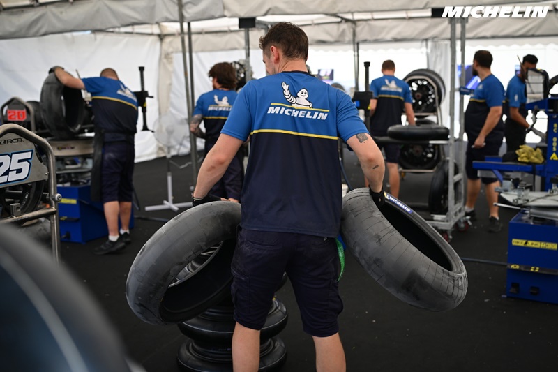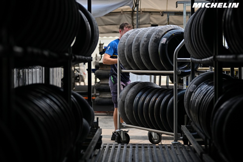 ในฐานะผู้จัดหายางอย่างเป็นทางการของโมโตจีพี มิชลินเตรียมยางซีรีส์ ‘พาวเวอร์ สลิค’ (MICHELIN Power Slick ) สำหรับพื้นแห้ง และ ‘พาวเวอร์ เรน’ (MICHELIN Power Rain) สำหรับพื้นเปียก ครบถ้วนพร้อมรองรับทุกสภาพแทร็กตลอดสุดสัปดาห์ของการแข่งขัน โดยมีทีมปฏิบัติการภาคสนามของมิชลิน 24 คน ซึ่งประกอบด้วยนักพัฒนาผลิตภัณฑ์ 2 คน, ช่างเทคนิค 6 คน, ช่างประกอบติดตั้งยาง 10 คน, ผู้จัดการและเจ้าหน้าที่ประสานงาน 1 คน, เจ้าหน้าที่ประชาสัมพันธ์ 2 คน และเจ้าหน้าที่สื่อสารการตลาด 3 คน ประจำการให้การสนับสนุนทีมแข่งอย่างใกล้ชิด ตั้งแต่การติดตั้งยาง ตรวจสภาพ บันทึกข้อมูล วิเคราะห์ประสิทธิภาพ ให้คำแนะนำการตั้งค่า ไปจนถึงการสนับสนุนทางเทคนิคแบบเรียลไทม์ เพื่อคงไว้ซึ่งความปลอดภัย ความน่าเชื่อถือ และความเป็นเลิศในระดับการแข่งขันอย่างสม่ำเสมอภายใต้สภาวะที่ท้าทายของการแข่งขัน