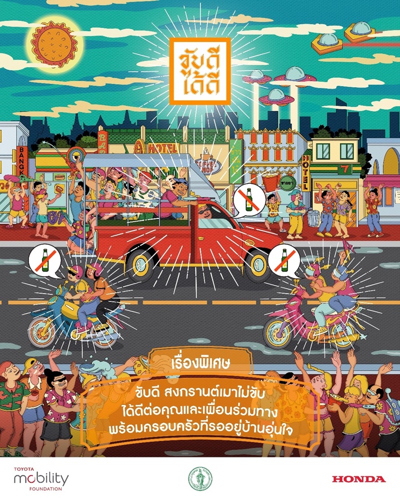 มูลนิธิโตโยต้า โมบิลิตี้ (Toyota Mobility Foundation: TMF) และบริษัท ฮอนด้า มอเตอร์ จำกัด (Honda) เตรียมดำเนินแคมเปญในช่วงเดือนเมษายนถึงมิถุนายน 2569 ให้สอดคล้องกับเทศกาลสงกรานต์*1 ซึ่งเป็นช่วงเวลาที่สถิติการเกิดอุบัติเหตุทางถนนเพิ่มสูงขึ้นอย่างมีนัยสำคัญ ภายใต้เฟสใหม่ของโครงการ “ขับดีได้ดี (KUB-DEE-DAI-DEE)” ในประเทศไทย โดยมีเป้าหมายเพื่อสร้างสังคมการจราจรที่ผู้ขับขี่รถยนต์และรถจักรยานยนต์ให้ความเคารพซึ่งกันและกัน และใช้ถนนอย่างปลอดภัยและมีความรับผิดชอบ