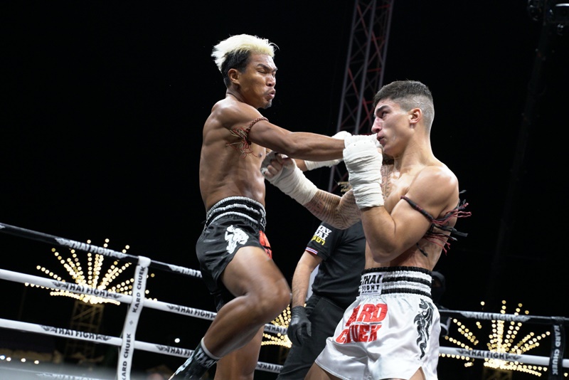 และ ในพิกัด 70 กิโลกรัม ระหว่าง ป.ต.ท. ว.รุจิรวงศ์ พบกับ อเลสซิโอ มาลาเตสต้า นักชกอิตาลี คู่สุดท้ายของงานก็ดุเดือดไม่แพ้คู่อื่น เริ่มต้นยกแรกออกอาวุธครบเครื่องทั้งหมัด เท้า เข่า ศอก มุ่งมั่นเดินเกมรุกกันอย่างหนัก จบยกที่หนึ่งก็ได้เห็นเลือดกำเดาจากทางอเลสซิโอ ยกที่สองเพิ่มความเดือดมากขึ้น ทั้งคู่เดินหน้าออกอาวุธกันแบบสุดตัว ไม่มีใครยอมใคร ถือว่าสูสีกันมากในยกนี้ยกสุดท้ายทำเอากองเชียร์ลุ้นกันตัวโก่ง ในยกนี้ ป.ต.ท. ปล่อยหมัดได้แม่นกว่า ทำให้สุดท้าย ป.ต.ท. คว้าแชมป์ไปครอง แชมป์ THAI FIGHT 2023 ทั้ง 3 รุ่นนี้ได้รับถ้วยพระราชทานพระบาทสมเด็จพระเจ้าอยู่หัว พร้อมกับปิกอัพ “ใหม่! อีซูซุ ดีแมคซ์ ไฮแลนเดอร์ 1.9 ดีดีไอ รุ่น 2 ประตู ไปครอง