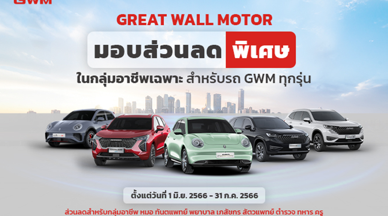 เกรท วอลล์ มอเตอร์ ในฐานะบริษัทที่ให้บริการเทคโนโลยีอัจฉริยะระดับโลก (Global Intelligent Technology Company) และผู้นำด้านยานยนต์พลังงานไฟฟ้าในประเทศไทย (xEV Leader) ส่งมอบความสุขแก่ผู้ขับขี่ชาวไทยอย่างต่อเนื่องสำหรับกลุ่มอาชีพพิเศษ ได้แก่ กลุ่มอาชีพแพทย์ ทันตแพทย์ สัตวแพทย์ พยาบาล เภสัชกร ทั้งที่เป็นข้าราชการและเอกชน ตำรวจและทหารทุกยศทุกตำแหน่ง และครูทั้งที่เป็นข้าราชการและเอกชน ที่มีใบประกอบวิชาชีพซึ่งออกโดยหน่วยงานภาครัฐ โดยกลุ่มอาชีพดังกล่าวจะได้รับส่วนลดพิเศษเมื่อซื้อรถยนต์ทุกรุ่นของ เกรท วอลล์ มอเตอร์ ไม่ว่าจะเป็น All New HAVAL H6 Plug-in Hybrid SUV รถยนต์เอสยูวีพลังงานไฟฟ้าแบบเสียบปลั๊กที่อัดแน่นไปด้วยเทคโนโลยีล้ำสมัย เจ้าของรางวัล “BEST HYBRID SUV UNDER 1,600 C.C.” จากงานประกาศรางวัลรถยอดเยี่ยมแห่งปี “CAR & BIKE OF THE YEAR 2023”, New HAVAL H6 Hybrid SUV หนึ่งในผู้นำรถยนต์กลุ่มคอมแพคเอสยูวี ที่ได้รับความนิยมอย่างต่อเนื่องจากผู้บริโภคชาวไทย, HAVAL JOLION Hybrid SUV สิงโตอารมณ์ดีมากด้วยเทคโนโลยีอัจฉริยะ โดดเด่นด้วยรูปลักษณ์ภายนอกอันโฉบเฉี่ยวสะท้อนถึงสุนทรียภาพแห่งอนาคต, ORA Good Cat รถยนต์ไฟฟ้า 100% ที่เข้ามาสร้างมาตรฐานใหม่และปลุกกระแสความนิยมให้กับตลาดรถยนต์ไฟฟ้าในประเทศไทย และ ORA Good Cat GT เจ้าเหมียวสปอร์ตไฟฟ้าดีไซน์โดดเด่นสมรรถนะเร้าใจ โดยข้อเสนอสุดเอ็กซ์คลูซีฟนี้ มีมูลค่าสูงสุดถึง 34,000 บาท (ขึ้นอยู่กับราคาของรถแต่ละรุ่น)