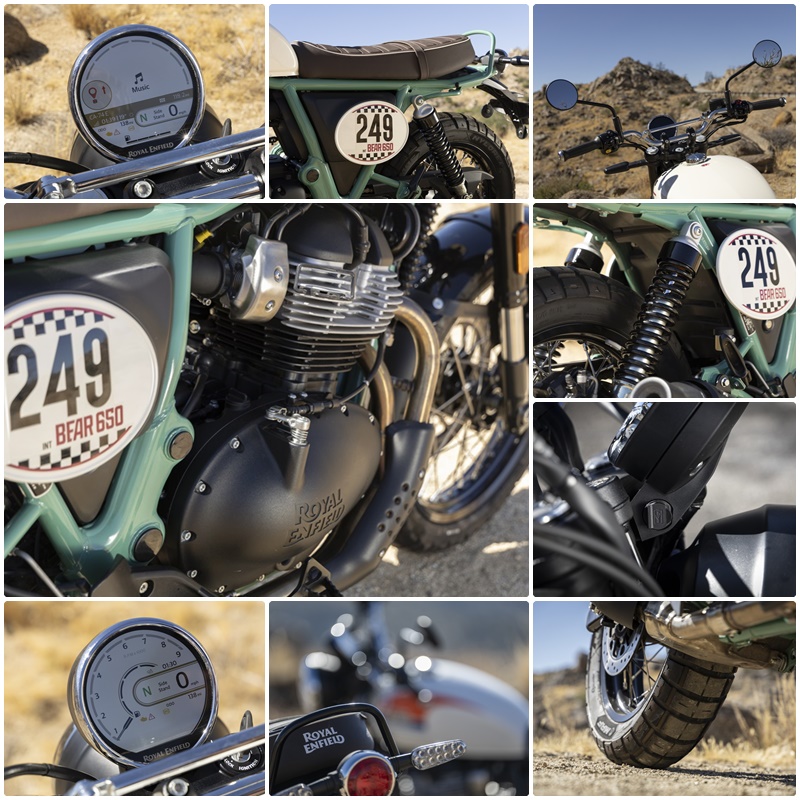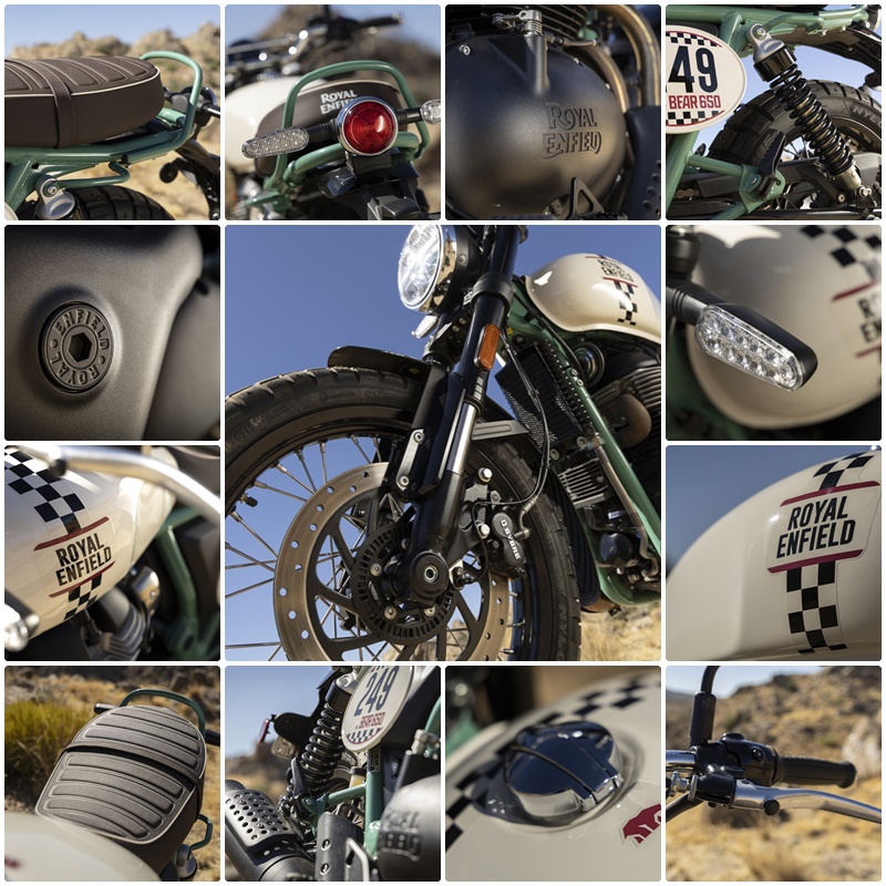 - Bear 650มาพร้อมเครื่องยนต์ 650cc อันเลื่องชื่อของ Royal Enfield ผสานดีไซน์สแครมเบลอร์คลาสสิกเข้ากับสมรรถนะเร้าใจ