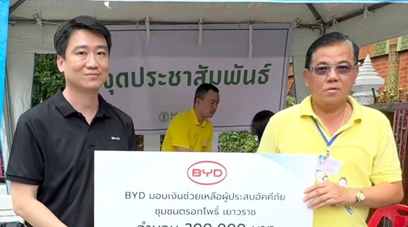 บริษัท บีวายดี ออโต้ จำกัด มอบเงินช่วยเหลือ 200,000 บาท แก่ผู้ประสบอัคคีภัยชุมชนตรอกโพธิ์ เยาวราช