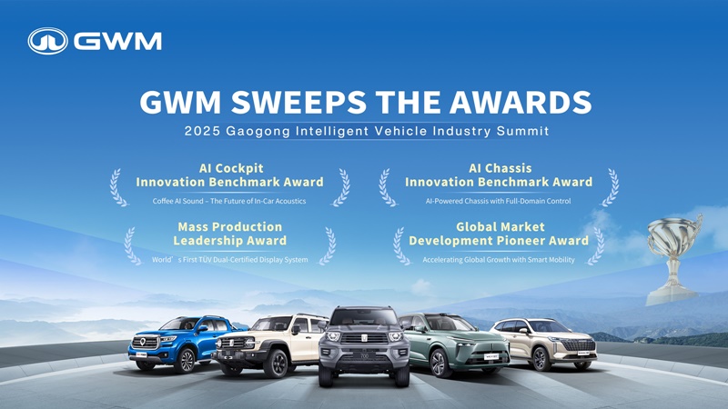 - รางวัลด้านการพัฒนาระดับโลก (2025 Global Market Development Pioneer):จากความสำเร็จของ GWM ในการขยายธุรกิจสู่เวทีสากล ด้วยกลยุทธ์รอบด้านที่ผสานเทคโนโลยีอัจฉริยะ การวิจัยและพัฒนาทั่วโลก และการดำเนินงานเชิงท้องถิ่น ทำให้ GWM สามารถตั้งศูนย์วิจัยและโรงงานผลิตครบวงจรในหลายประเทศ พร้อมยอดขายสะสมทั่วโลกทะลุ 2 ล้านคัน ปัจจุบัน GWM ดำเนินธุรกิจในกว่า 170 ประเทศ และมียอดขายต่างประเทศเติบโตต่อเนื่อง เช่น GWM TANK 300 Hi4-T ที่เปิดตัวในบราซิล GWM POER Hi4-T ที่คว้ารางวัลในออสเตรเลีย GWM P-Series ที่ครองตลาดชิลี และ NEW GWM TANK 300 DIESEL ที่ได้รับความนิยมอย่างสูงในประเทศไทย ความสำเร็จนี้สะท้อนการเปลี่ยนผ่านจากการส่งออกผลิตภัณฑ์ไปสู่การส่งออกระบบนิเวศภายใต้กลยุทธ์ ONE GWM ที่มุ่งสร้างมาตรฐานใหม่ของแบรนด์ยานยนต์คุณภาพของจีนบนเวทีโลก
