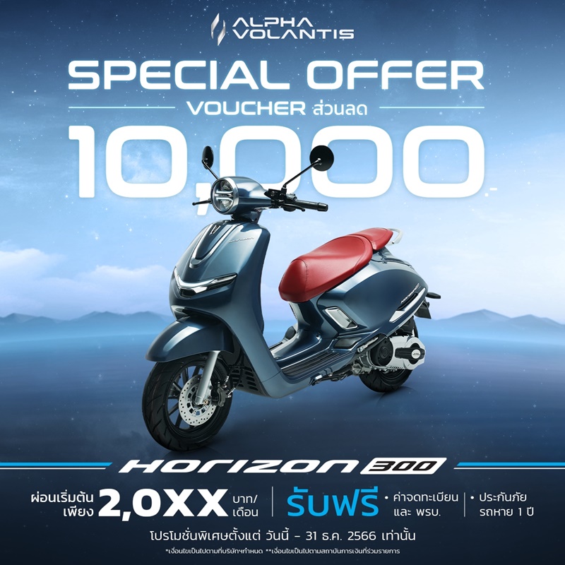 บริษัท ทริลเลี่ยน มอเตอร์ (ไทยแลนด์) จำกัด ผู้ผลิตและจัดจำหน่ายรถจักรยานยนต์ แบรนด์ ALPHA VOLANTIS (อัลฟ่า โวแลนทิส) ที่ได้สร้างสรรค์ยนตรกรรมสองล้อภายใต้แนวคิด “INVENTING THE FUTURE” สะท้อนความตั้งใจในการสร้างสรรค์ด้วยดีไซน์ล้ำสมัยระดับพรีเมียมสู่ตลาดรถจักรยานยนต์ในเมืองไทย เพื่อตอบสนองไลฟ์สไตล์คนยุคใหม่แห่งอนาคตด้วยรถจักรยานยนต์พรีเมียมออโตเมติก HORIZON 300 และ HORIZON 150 พร้อมมุ่งมั่นสร้างประสบการณ์การขับขี่ที่เป็นไปได้มากกว่าแค่การเดินทางด้วยรถจักรยานยนต์ คัสตอมดีไซน์สุดพิเศษ HORIZON 300 SR (Street Racer) กับข้อเสนอสุดพิเศษแห่งปี ให้คุณมากกว่าใคร ตั้งแต่วันนี้จนถึงวันที่ 31 ธันวาคม 2566