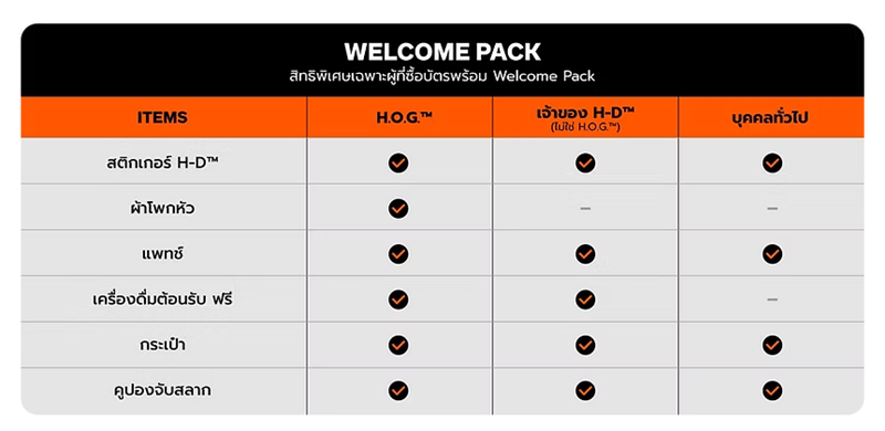 สิทธิ์โหวต Custom King, บัตรเล่นเกม, แพทซ์, สติกเกอร์ H-D, ผ้าโพกหัว, Welcome Drink,กระเป๋า, คูปองจับสลาก,และกิจกรรมที่น่าสนใจอื่นๆ |