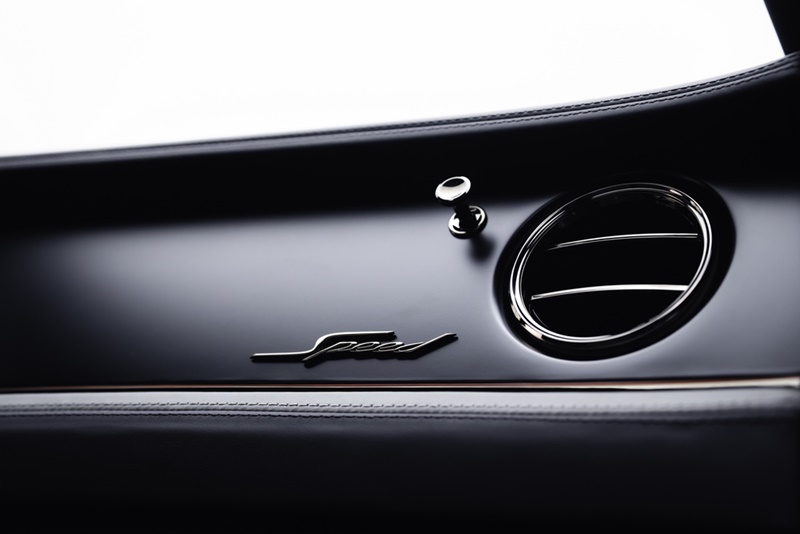 เฉดสีของ Flying Spur Speed ที่ได้รับการทำสีโดยไล่ระดับจากเฉดสีเงิน Tungsten แบบเมทัลลิกไปสู่เฉดสีดำ Onyx ด้วยแรงบันดาลใจจากท้องฟ้าในยามค่ำคืนเหนือแคลิฟอร์เนียตอนใต้ ภายในห้องโดยสารสะท้อนความแตกต่างด้วยเฉดสีเทา Porpoise ในส่วนห้องโดยสารด้านหน้า และสีเทาเข้ม Anthracite ในส่วนด้านหลัง พร้อมด้วยการเดินด้ายในเฉดสี Stratos ที่สว่างกว่าเพื่อเน้นการเย็บตะเข็บ ขอบเบาะโดยสาร และการเย็บตราสัญลักษณ์ สะท้อนถึงบุคลิกสองด้านของยนตรกรรมที่ขับขี่สนุกและนั่งสบายรุ่นนี้