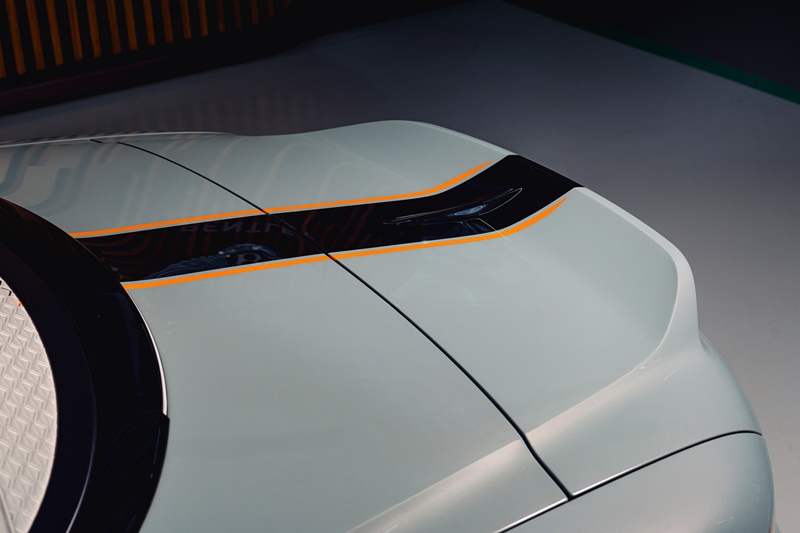 เบนท์ลีย์ มูลินเนอร์ (Bentley Mulliner) แผนกออกแบบเฉพาะบุคคลของเบนท์ลีย์ มอเตอร์ส รังสรรค์ Batur Convertible แกรนด์ ทัวเรอร์แบบเปิดประทุนรุ่นออกแบบพิเศษคันแรกที่มีรูปลักษณ์ภายนอกอันงดงามด้วยเฉดสีเทา Opalite พร้อมกับภายในห้องโดยสารที่ตกแต่งอย่างร่วมสมัยด้วยเฉดสีดำ Beluga และการตกแต่งด้วยเฉดสีส้ม Mandarin โดยในส่วนภายในห้องโดยสารที่รังสรรค์ขึ้นอย่างพิถีพิถันด้วยความร่วมมือจากลูกค้าสะท้อนความโดดเด่นในแบบ “One Plus One” ที่ได้มีการตกแต่งด้วยเฉดสีที่ตัดกันบนเบาะโดยสารของผู้ขับขี่และผู้โดยสารแต่ยังคงความเข้ากันได้อย่างลงตัวของสองเฉดสีที่คอนทราสต์