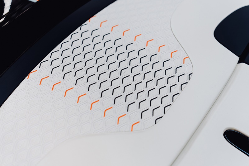 - ตัวถังรังสรรค์ขึ้นในเฉดสีเทา Opaliteพร้อมตกแต่งด้วยแถบแข่งเฉดสีดำ Beluga และแถบไฮไลท์สีส้ม Mandarin
