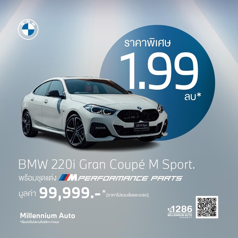• BMW 220i Gran Coupe M Sport ราคาเพียง 1.99 ล้านบาท ฟรีชุดแต่ง M Performance Parts มูลค่า 99,999 บาท*
