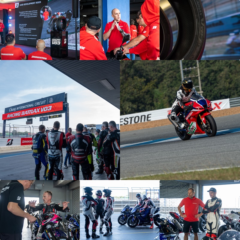 Bridgestone Moto เดินหน้าตอกย้ำความเป็นผู้นำนวัตกรรมยางรถจักรยานยนต์ระดับโลก ด้วยการเปิดตัวและทดสอบยางแข่ง Bridgestone Racing Battlax V03 และ ยางสปอร์ต Battlax Racing Street RS12 พร้อมขนฝูงรถสปอร์ตมาให้ทดสอบแบบจัดเต็ม อาทิเช่น รถแข่ง Yamaha R1 จาก YART, Honda CBR 1000 RRR, BMW S1000 RR และ Ducati Panigale V4S 7G