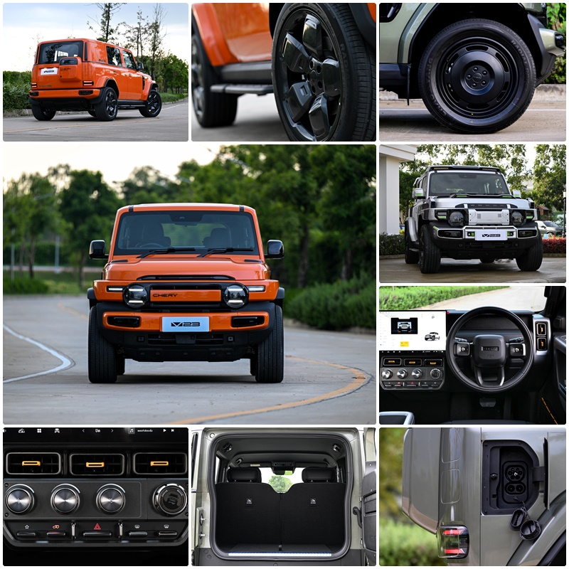 - V23:เอสยูวีพลังงานไฟฟ้า 100% โดดเด่นด้วยดีไซน์ทรงกล่องสไตล์เรโทร (Boxy Design) ที่สะท้อนตัวตนของคนเมืองยุคใหม่ พร้อมพื้นที่ใช้สอยที่ปรับเปลี่ยนได้หลากหลายและเทคโนโลยีเพื่อการขับขี่ที่สนุกสนาน โดย CHERY V23 มีให้เลือก 3 รุ่น ได้แก่
