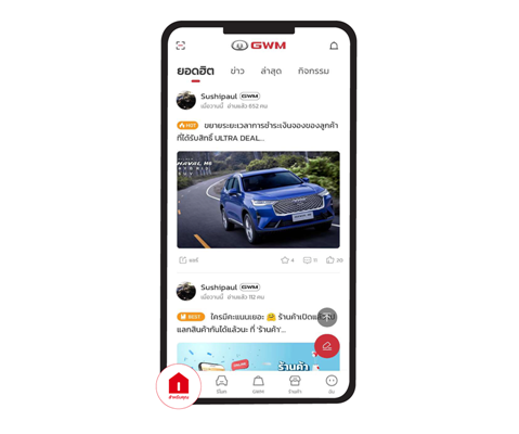 GWM Application ไม่เพียงแต่มีฟีเจอร์และฟังก์ชั่นการใช้งานเพื่ออำนวยความสะดวกให้กับลูกค้าในการให้บริการต่างๆ เกี่ยวกับรถยนต์ แต่ยังเป็นพื้นที่ชุมชนออนไลน์อีกช่องทางหนึ่งให้กับลูกค้าและผู้ที่สนใจได้มาแบ่งปันเรื่องราวและเติมเต็มประสบการณ์ไลฟ์สไตล์ต่างๆ ได้อย่างเต็มที่
