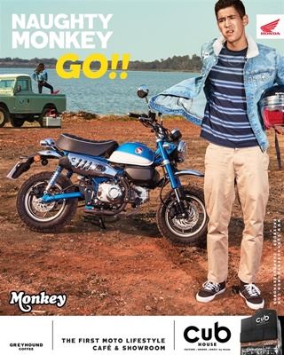 CUB House – The First Moto Lifestyle Café and Showroom by Honda ร้านไลฟ์สไตล์รูปแบบใหม่ ภายใต้แบรนด์ฮอนด้า เปิดตัวคอนเซปต์ใหม่ Naughty MONKEY ให้กับรถ Monkey รถจักรยานยนต์ที่ครองใจวัยรุ่นมาทุกยุคสมัย มุ่งสื่อสารถึงกลุ่มคนรุ่นใหม่ผู้มีไลฟ์สไตล์ความสนุกที่แตกต่าง ซุกซน และเป็นตัวของตัวเอง