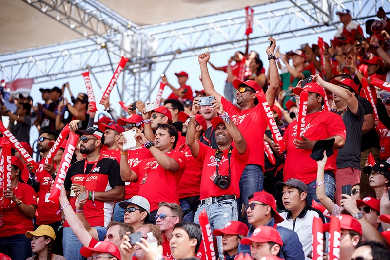 สำหรับกิจกรรมเชียร์การแข่งขัน MotoGP 2019 เป็นการรวมตัวของสาวกดูคาทิสต้าจากทั่วโลกที่เดินทางมาร่วมส่งแรงใจเชียร์สองนักแข่ง รวมถึงสองนักแสดงและพิธีกรชื่อดังอย่าง คุณภูริ หิรัญพฤกษ์ และคุณเป้-อารักษ์ อมรศุภศิริ ที่ขี่ดูคาติมาร่วมกิจกรรมเชียร์ MotoGP แบบติดขอบสนาม นอกจากนี้ แฟนดูคาติยังได้เข้าร่วมกิจกรรม Meet & Greet สองนักแข่ง Ducati MotoGP Team ทั้ง Andrea Dovizioso (อังเดร โดวิซิโอโซ่) #04 และ Danilo Petrucci (ดานิโย่ เปตรุคชี่) #9 อย่างใกล้ชิด ในบริเวณ Ducati Fan Zone ที่จัดไว้ให้เฉพาะสาวกดูคาทิสต้าแบบเอ็กซ์คลูซีฟ พร้อมช้อปปิ้งสินค้าโซน Ducati Apparel คอลเลคชั่นพิเศษและส่วนลดอีกมากมายเฉพาะในงาน MotoGP 2019 เท่านั้น