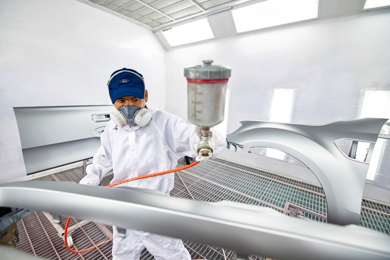 ที่ศูนย์สีมาตรฐานฟอร์ดใช้สีที่ได้รับการรับรองคุณภาพจากโรงงานฟอร์ด และมีระบบคอมพิวเตอร์ช่วยในการผสมสีให้ใกล้เคียงสีจริงตามสภาพการใช้งานของรถคันนั้นๆ ให้มากที่สุด และใช้เครื่องมืออันทันสมัยในการขัดสีเพื่อให้ชั้นสีต่างๆ เรียบเนียนติดทนนาน นอกจากนี้ยังทำการพ่นสีในระบบปิดเพื่อป้องกันฝุ่นละอองจากภายนอกและช่วยควบคุมอุณหภูมิในการอบสีเพื่อความคงทนสวยงาม มีไฟส่องสว่างเพื่อควบคุมคุณภาพในการเทียบสี นอกจากนี้ ยังมีระบบดูดอากาศในห้องพ่นสีที่เป็นมิตรกับสิ่งแวดล้อมลดการปล่อยอากาศเสียสู่ชั้นบรรยากาศ