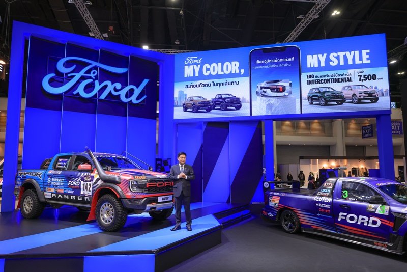 ฟอร์ด ประเทศไทย มอบข้อเสนอพิเศษส่งท้ายปี เปิดตัวแคมเปญสุดเอ็กซ์คลูซีฟ ‘My Color, My Style’ ที่ให้ลูกค้าสามารถเลือกแร็ปฟิล์มสีกันรอยคุณภาพสูงผ่านการจองออนไลน์ที่ www.ford.co.th และมอบแคมเปญ ‘ฟอร์ด ช่วยผ่อนคนละครึ่งนาน 1 ปี‘ จนถึงวันที่ 31 ธันวาคม 2568 เพื่อช่วยลดภาระค่าใช้จ่ายให้ลูกค้า และสอดรับกับมาตรการกระตุ้นเศรษฐกิจของภาครัฐ พร้อมลุ้นทองคำแท่งรวมมูลค่ากว่า 3,500,000 บาท สำหรับลูกค้าในงานมหกรรมยานยนต์ ครั้งที่ 42 ระหว่างวันที่ 29 พฤศจิกายน ถึง 10 ธันวาคม 2568 ณ บูธฟอร์ด (A04) อาคารอิมแพ็ค ชาเลนเจอร์ 1-3 เมืองทองธานี และที่ผู้จำหน่ายฟอร์ดทั่วประเทศ นอกจากนี้ ฟอร์ดยังได้นำฟอร์ด เรนเจอร์ แร็พเตอร์ แชมป์รายการแข่งขันเอเชีย ครอส คันทรี่ แรลลี่ 2025 รุ่น T2A-D หรือรุ่นโปรดักชันมาตรฐานโรงงาน คันจริง มาจัดแสดงภายในงาน