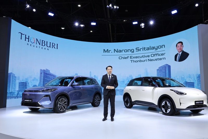 นายณรงค์ สีตลายน ประธานเจ้าหน้าที่บริหาร บริษัท ธนบุรีนอยสเติร์น จำกัด กล่าวว่า “ตลอดปีแรกในประเทศไทย GEELY ได้ตอกย้ำความเป็นผู้นำด้านนวัตกรรมยานยนต์ไฟฟ้าระดับโลก ด้วยความสำเร็จของ GEELY EX5 ผลิตภัณฑ์เบอร์หนึ่งของเราที่ได้รับกระแสตอบรับจากลูกค้าชาวไทยอย่างดีเยี่ยม สะท้อนความไว้วางใจในคุณภาพของผลิตภัณฑ์และบริการระดับพรีเมียม สำหรับงานมหกรรมยานยนต์ปีนี้ เราเดินหน้าต่อยอดความสำเร็จด้วยการเปิดตัว GEELY EX2 รถรุ่นที่ขายดีที่สุดในจีน ด้วยยอดขายกว่า 400,000 คันทั่วโลกในเวลาเพียง 12 เดือน เพื่อเติมเต็มความหลากหลายของผลิตภัณฑ์ ตามเป้าหมายที่จะนำเสนอรถรุ่นใหม่ให้กับลูกค้าชาวไทยอย่างน้อย 1 รุ่นทุกปี ตอกย้ำความมุ่งมั่นของเราที่จะก้าวสู่การเป็นหนึ่งในผู้นำตลาดรถยนต์ไฟฟ้าของประเทศไทย ด้วยการชูจุดแข็งในศักยภาพของ GEELY ควบคู่ความเชี่ยวชาญและประสบการณ์กว่า 85 ปีของกลุ่มธนบุรี”