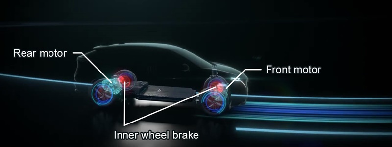 เทคโนโลบีระบบขับเคลื่อนสี่ล้อที่มาพร้อมมอเตอร์ไฟฟ้าคู่ หน้า–หลัง ตอบสนองฉับไว ยึดเกาะถนนดี มอบความมั่นใจสูงสุดให้แก่ผู้ขับ พร้อมประสบการณ์การขับขี่ที่ “All in Control” อย่างแท้จริง