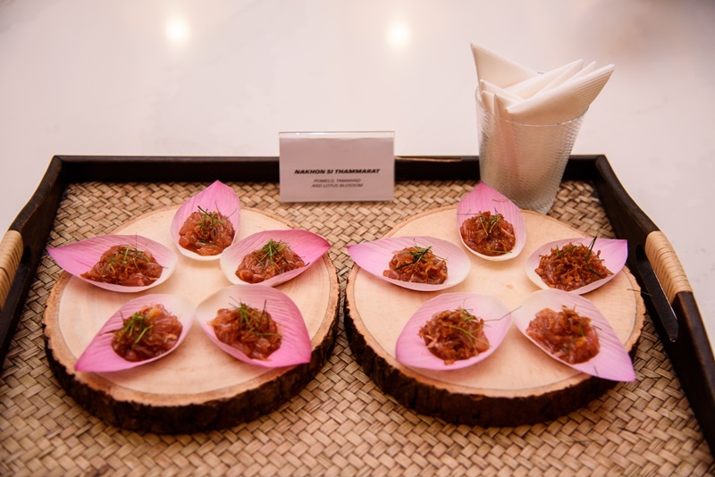 - นครศรีธรรมราช: ส้มโอมะขาม และกลีบดอกบัว ถูกนำมาปรุงเป็นสลัดแบบปาล์มเมตโต (Palmetto) ที่ตีความใหม่ เติมความโดดเด่นด้วยวัตถุดิบจากธรรมชาติและเทคนิคการดอง