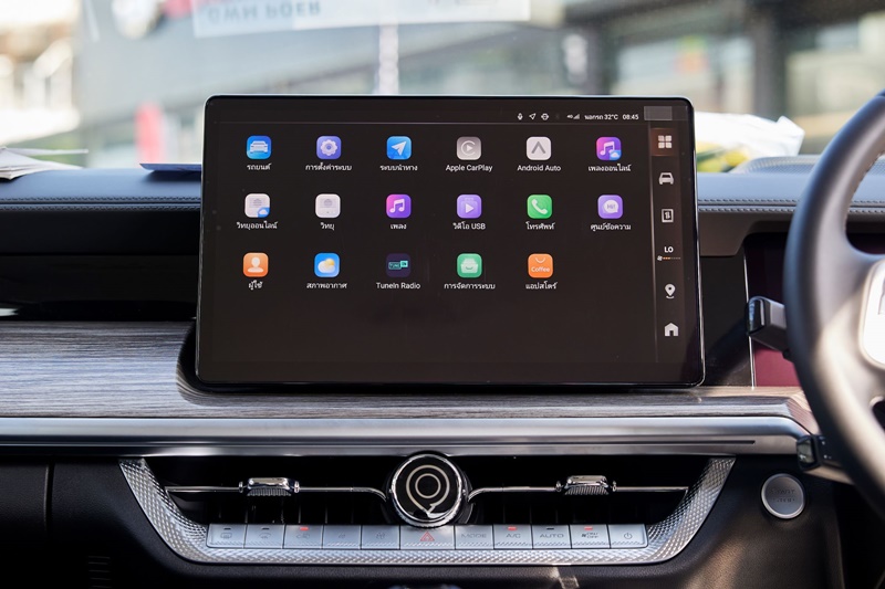 - ความพรีเมียมและความสะดวกสบายเหนือกว่ารถกระบะในเซ็กเมนต์เดียวกัน:ภายในห้องโดยสารถูกออกแบบให้กว้าง พรีเมียม และใช้งานง่าย ด้วยโทนภายในสีดำเสริมความรู้สึกพรีเมียมตั้งแต่แรกสัมผัส เบาะหลังปรับเอนได้ 2 ระดับ (ประมาณ 33 องศา) ให้นั่งสบายขึ้นทุกระยะทาง พร้อมพนักพิงเบาะพับได้แบบ 40:20:40 ที่มาพร้อมที่พักแขนและที่วางแก้ว รองรับทั้งการโดยสารและการขนของได้อย่างลงตัว วัสดุหุ้มเบาะหนังสังเคราะห์พรีเมียม นั่งสบายทั้งด้านหน้าและด้านหลัง เหมาะทั้งวันทำงานและทริปครอบครัว มอบประสบการณ์ขั้นกว่าด้วยหน้าจอมัลติมีเดียแบบสัมผัสขนาด 3 นิ้ว (ในรุ่น 2.4T PRO) และขนาด 14.6 นิ้ว (ในรุ่น 2.4T ULTRA และ 2.4T ULTRA 4WD) เกียร์ควบคุมด้วยระบบไฟฟ้า Electronic Shifter บริเวณคอนโซลกลาง เสริมความสะดวกสบายด้วย Smart Key และ Push Start ระบบปรับอากาศอัตโนมัติแยกอิสระซ้าย-ขวา และระบบล็อกประตูอัตโนมัติเมื่อถึงความเร็วที่กำหนด เบาะคนขับสามารถปรับไฟฟ้าได้ 6 ทิศทาง และเบาะผู้โดยสารด้านหน้าปรับแบบไฟฟ้าได้ 4 ทิศทาง พร้อมรองรับไลฟ์สไตล์การทำงานยุคใหม่ด้วยพอร์ต USB หน้า-หลัง (มีช่องต่อสำหรับกล้องบันทึกภาพแยกต่างหาก) และช่องจ่ายไฟสำรอง 220V ในรถ พร้อมที่ชาร์จโทรศัพท์แบบไร้สาย มอบความสะดวกสบายแบบเต็มพิกัด ทำให้ทุกการเดินทางด้วยรถกระบะ ไม่เหมือนเดิมอีกต่อไป