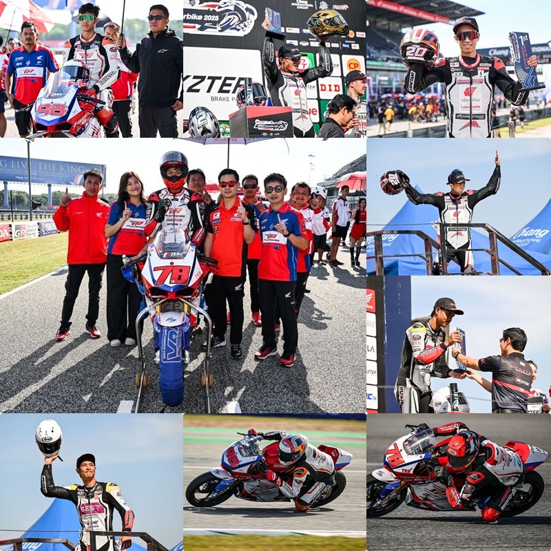 ดาวรุ่งนักบิดไทยพร้อมด้วย Honda CBR Series จากแซทเทิลไลท์ทีมฮอนด้า กวาดวินเนอร์จากการแข่งขัน 2 รุ่นท็อปสุดของรายการ จากผลงานอันดับที่ 1 ในรุ่นซูเปอร์สปอร์ต 600 ซีซี (SS1 Pro) ของ “ข้าวกล้อง-จักรีภัทร” และชัยชนะที่สุดสำคัญในการยืนยันพัฒนาการของ “มิกซ์-ธนัช” ในรุ่นใหญ่สุดแรงสุดของรายการอย่างรุ่นซูเปอร์ไบค์ 1,000 ซีซี (SB1 Pro) ระเบิดผลงานในการแข่งขัน ศึก NEXZTER BRIC Superbike 2025 สนามที่ 4 สนามสุดท้ายของฤดูกาล เรซที่ 2 ณ สนามช้าง อินเตอร์เนชั่นแนลเซอร์กิต จังหวัดบุรีรัมย์ เมื่อวันอาทิตย์ที่ 23 พฤศจิกายน 2568