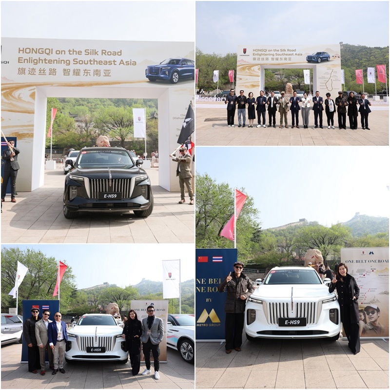นายบดินทร์ บุญวิสุทธิ์ ประธานเจ้าหน้าที่บริหาร เมโทร กรุ๊ป ผู้จัดจำหน่ายรถยนต์ “หงษ์ฉี” (HONGQI) อย่างเป็นทางการในประเทศไทย และผู้แทนจาก China FAW Group ร่วมทำพิธีตีธงปล่อยตัวรถยนต์อเนกประสงค์ไฟฟ้า HONGQI E-HS9 กับการเดินทางครั้งประวัติศาสตร์ “หนึ่งเส้นทาง…หนึ่งการเชื่อมโยง One Belt One Road” จากสาธารณรัฐประชาชนจีน ผ่าน สปป. ลาว สู่ประเทศไทย ระยะทางกว่า 6,000 กม. ณ กำแพงเมืองจีน เมื่อวันที่ 25 เมษายน ที่ผ่านมา โดยมี นางสาวนลินทิพย์ หอมวิเศษวงศา อัครราชทูต (ฝ่ายการพาณิชย์) สำนักงานพาณิชย์ในต่างประเทศ ณ กรุงปักกิ่ง มร. เฉิน ปิน รองกรรมการผู้จัดการใหญ่ บริษัท China FAW Group Co., Ltd. และ มร. เซียว เซียว ผู้จัดการทั่วไป บริษัท China FAW Group Import & Export จำกัด และสื่อมวลชน ให้เกียรติร่วมเป็นสักขีพยาน