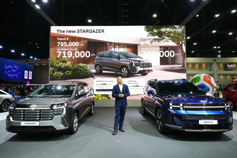 ขณะเดียวกัน ฮุนไดยังเปิดตัว Hyundai new STARGAZER รถยนต์ 6 ที่นั่ง 3 แถว รุ่นปรับโฉมใหม่ รถอเนกประสงค์ที่ออปชันความปลอดภัยครบสุดในคลาสด้วย Hyundai SmartSense มากถึง 13 ระบบ พัฒนาภายใต้แนวคิด “Life Upgrader” อัปชีวิตให้เหนือกว่า