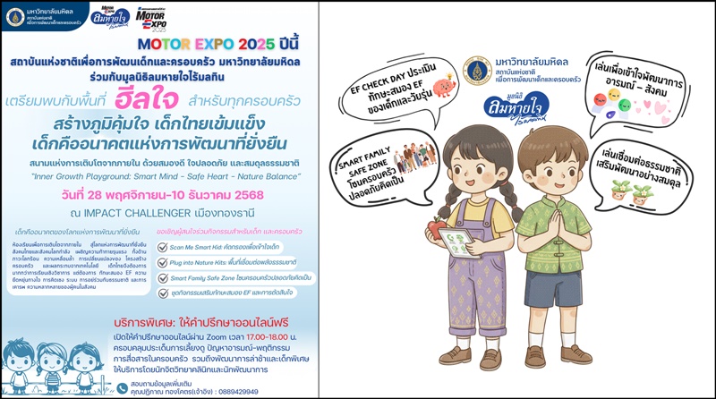 มูลนิธิลมหายใจไร้มลทิน ร่วมกับ สถาบันแห่งชาติเพื่อการพัฒนาเด็กและครอบครัว ม.มหิดล เชิญชวนทุกครอบครัว “สร้างภูมิคุ้มกันใจ เด็กไทยเข้มแข็ง” ภายใต้แนวคิด “Inner Growth Playground: Smart Mind – Safe Heart – Nature Balance”