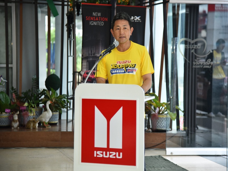 พร้อมด้วยอาจารย์พัฒนเดช อาสาสรรพกิจ ผู้อำนวยการจัดคาราวาน ร่วมให้การต้อนรับและตีธงปล่อยขบวนรถอีซูซุคาราวานสัญจรเส้นทางที่ 3 ซึ่งเป็นเส้นทางระหว่างประเทศ คณะคาราวานทั้ง 25 คันา ประกอบด้วยรถอีซูซุมิว-เอ็กซ์ ขับเคลื่อน 4 ล้อ และขับเคลื่อน 2 ล้อ รถอีซูซุดีแมคซ์ ไฮแลนเดอร์ และรถอีซูซุดีแมคซ์ วี-ครอส 4×4 ต่างขับรถมุ่งสู่ด่านพุน้ำร้อน (ประเทศไทย)
