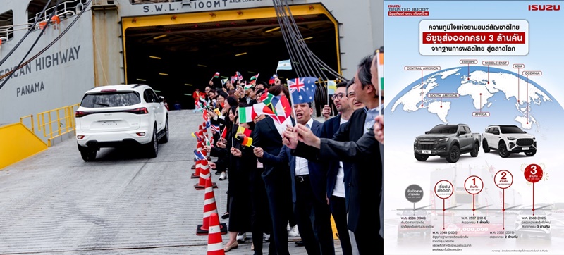 อีซูซุขับเคลื่อนเศรษฐกิจ ส่งออกรถจากฐานการผลิตไทยไปตลาดโลกครบ 3 ล้านคัน