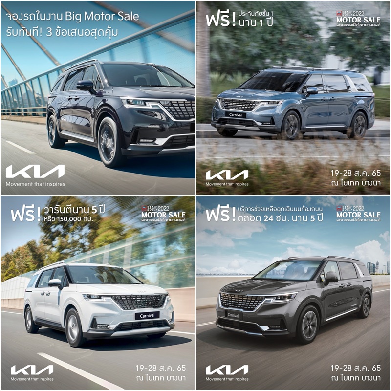 บริษัท ยนตรกิจ เกีย มอเตอร์ จำกัด ผู้นำเข้าและจัดจำหน่ายรถยนต์เกีย ในประเทศไทยอย่างเป็นทางการ ร่วมจัดแสดงยนตรกรรมอเนกประสงค์ระดับพรีเมียม เกีย คาร์นิวัล ใหม่ เจเนอเรชั่นที่ 4 ครบทุกรุ่นย่อย พร้อมมอบข้อเสนอพิเศษภายในงานมหกรรมเปิดโลกยานยนต์ BIG Motor Sale 2022 ณ บูธเกีย A18 ฮอลล์ 101-104 ศูนย์นิทรรศการและการประชุมไบเทค บางนา ระหว่างวันที่ 19-28 สิงหาคม 2565