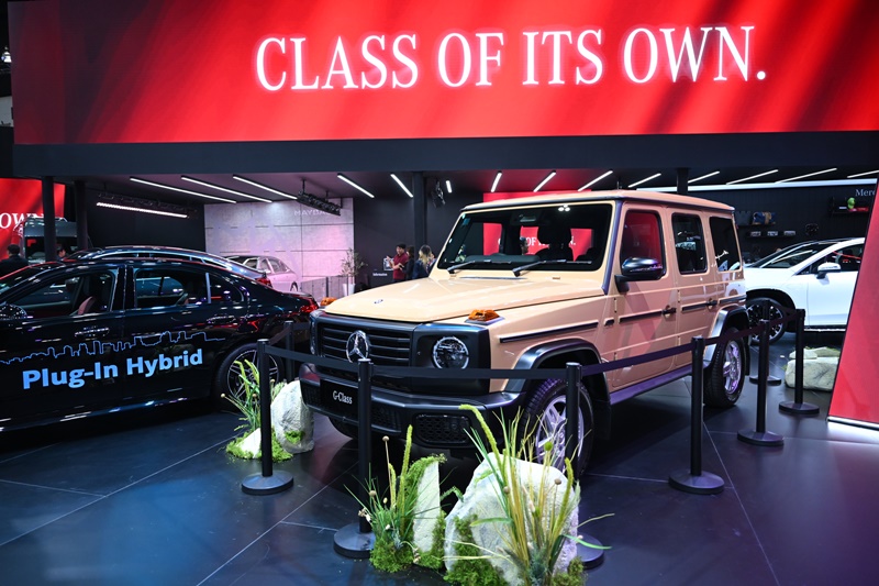 ภายในบูธเมอร์เซเดส-เบนซ์ ลูกค้าทุกคนจะได้พบกับยนตรกรรมใหม่ล่าสุดอีก 3 รุ่น ที่นำมาจัดแสดงเป็นครั้งแรกในประเทศไทย เริ่มด้วย The new CLA รถยนต์พลังงานไฟฟ้า 100% รุ่นแรกที่มาพร้อมแพลตฟอร์ม MMA (Mercedes-Benz Modular Architecture) และแบตเตอรี่ 800V ขนาด 85 kWh ซึ่งมอบระยะทางการขับขี่ด้วยพลังงานไฟฟ้าสูงสุดถึง 792 กิโลเมตร ต่อการชาร์จเต็มหนึ่งครั้ง ตามมาตรฐาน WLTP โดยจะมีการเปิดตัวอย่างเป็นทางการพร้อมประกาศราคาจำหน่าย ในช่วงต้นปี 2569 ตามด้วย G 450 d Edition STRONGER THAN THE 1980s โมเดลพิเศษที่พัฒนาขึ้นโดยมีแรงบันดาลใจมาจาก W460 ในยุค 80 นำเข้ามาในประเทศไทยจำนวน 3 คัน จาก 460 คันทั่วโลก วางจำหน่ายในราคา 14,180,000 บาท ปิดท้ายด้วยอีกหนึ่งโมเดลเอสยูวียอดนิยมที่มาพร้อมรุ่นพิเศษกับ GLA 200 Night Edition ที่เสริมลุคความสปอร์ตด้วยชุดแต่ง AMG Line และ Night Package รอบคัน และสีตัวถังแบบ MANUFAKTUR alpine grey solid วางจำหน่ายในราคา 2,580,000 บาท