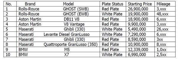 ยนตรกรรมลักชัวรี่สปอร์ตสัญชาติอิตาเลียน นำรุ่น กิบลี่ 330 (Ghibli 330) ราคาเพียง 5.49 ล้านบาท เลอวานเต้ ดีเซล (Levante Diesel) ราคาเริ่มต้น 7.29 ล้านบาท และควอตโตรปอร์เต้ (Quattroporte) ราคาเริ่มต้น 10.9 ล้านบาท ผ่านโปรแกรม ออฟฟิซีน มาเซราติ พรีโอนด์ รถใช้แล้วสภาพดี พร้อมการรับประกันคุณภาพจากศูนย์บริการ มาเซราติ