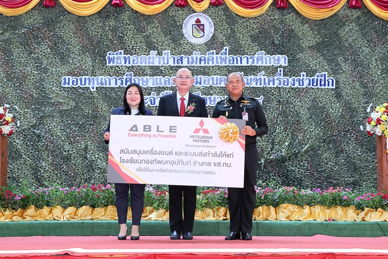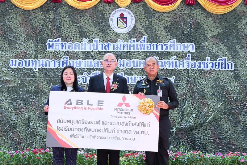 บริษัท มิตซูบิชิ มอเตอร์ส (ประเทศไทย) จำกัด ร่วมกับ บริษัท เอเบิล มอเตอร์ส ปากเกร็ด จำกัด เดินหน้าเสริมศักยภาพทักษะเชิงช่างในสายอาชีพอย่างต่อเนื่อง ด้วยการมอบเครื่องยนต์และระบบส่งกำลัง ให้แก่ โรงเรียนกองทัพบกอุปถัมภ์ ช่างกล ขส.ทบ. โดยภายในพิธีมี การลงนามบันทึกข้อตกลงความร่วมมือ (MOU) ระหว่างบริษัท เอเบิล มอเตอร์ส ปากเกร็ด จำกัด และ โรงเรียนกองทัพบกอุปถัมภ์ ช่างกล ขส.ทบ. โดยเป็น การบันทึกข้อตกลงความร่วมมือทางวิชาการ ผ่านการจัดการเรียนการสอนหลักสูตรประกาศนียบัตรวิชาชีพ สาขาวิชาช่างยนต์ สาขาวิชายานยนต์ไฟฟ้า และประกาศนียบัตรวิชาชีพชั้นสูง สาขาวิชาเทคนิคเครื่องกล โดยเปิดโอกาสให้นักศึกษาได้ฝึกปฏิบัติงานในสถานประกอบการ ส่งเสริมการเรียนรู้จากประสบการณ์จริง เพื่อสอดรับกับวัตถุประสงค์ในการประสานความร่วมมือในการจัดการอาชีวศึกษา เพื่อผลิตและพัฒนากำลังคนให้สอดคล้องกับพระราชบัญญัติการศึกษาแห่งชาติ ตามนโยบายของรัฐบาล และความต้องการของสถานประกอบการอย่างยั่งยืน