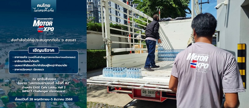 Event MOTOR EXPO 2025 ส่งต่อน้ำใจคนไทยช่วยผู้ประสบภัยน้ำท่วมภาคใต้ ธันวาคม 9, 2025ธันวาคม 9, 2025 Rinny ส่งผ่าน Thai PBS ไปช่วยผู้ประสบภัย “IMC สื่อสากล” ผู้จัดงาน “มหกรรมยานยนต์” หรือ Motor Expo 2025 เปิดให้ผู้ชมงาน และประชาชนทั่วไปนำอาหารแห้ง สิ่งของเครื่องใช้มาบริจาค ภายในงาน “มหกรรมยานยนต์ ครั้งที่ 42” เพื่อรวบรวมส่งผ่าน Thai PBS ไปช่วยผู้ประสบภัยน้ำท่วมภาคใต้ Share this:Click to share on Facebook (Opens in new window)Click to share on Twitter (Opens in new window)Click to share on LinkedIn (Opens in new window)Click to print (Opens in new window)Click to email this to a friend (Opens in new window) Related