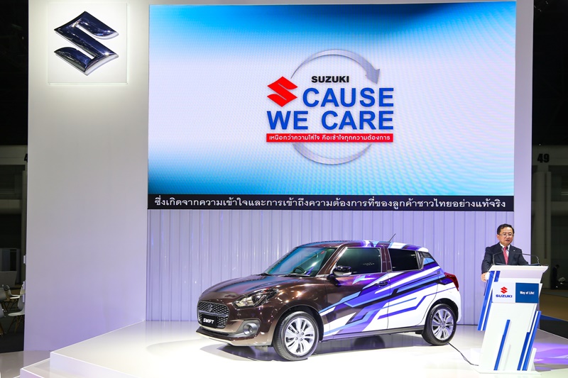 งานบางกอก อินเตอร์เนชั่นแนล มอเตอร์โชว์ ครั้งที่ 42 ถูกจัดขึ้นภายใต้แนวคิด “วิถีชีวิตใหม่ ใจเป็นสุข” หรือ “Shaping the Next Chapter” ซึ่งจากวิกฤตการณ์โรคระบาดที่เกิดขึ้น ส่งผลให้เกิดการเปลี่ยนแปลงในวิถีแห่งการดำเนินชีวิต ตลอดไปจนถึงการพัฒนานวัตกรรม และเทคโนโลยีใหม่ ๆ เพื่อให้ได้เรียนรู้ที่จะอยู่อย่างปลอดภัย และใช้ชีวิตอย่างเป็นสุข ซึ่งเป็นแนวคิดที่สอดคล้องกับการดำเนินธุรกิจของซูซูกิในช่วงที่ผ่านมา ถึงแม้สถานการณ์ตลาดอุตสาหกรรมยานยนต์โดยรวมจะมีแนวโน้มที่ยากลำบากก็ตาม ยอดขายรถยนต์ในปี 2563 ซูซูกิมีอัตราการเติบโตสูงกว่าตลาดรวม 7% ที่ตัวเลขยอดขายจำนวน 25,528 คัน ด้วยกลยุทธ์สำคัญคือ การนำเสนอสินค้าที่เหมาะสมกับกลุ่มลูกค้าให้สามารถเข้าถึงและเป็นเจ้าของได้โดยง่าย ช่วยยกระดับคุณภาพชีวิตให้ปลอดภัยได้อย่างมีความสุข แสดงให้เห็นถึงความพยายามในการนำเสนอสินค้าและบริการที่ตอบรับต่อการดำเนินชีวิตในวิถีใหม่ของลูกค้า โดยจากการเข้าร่วมงาน Bangkok International Motor Show 2021 ด้วยสถานการณ์หลายอย่างเริ่มมีทิศทางที่ดีขึ้น รวมถึงบรรยากาศที่มีส่วนช่วยกระตุ้นให้เกิดการตัดสินใจซื้อรถในช่วงนี้ ซูซูกิคาดการณ์ว่าจะสามารถสร้างยอดจองภายในงานได้ถึง 2,500 คัน เพื่อบรรลุเป้าหมายยอดขายรวมของซูซูกิในปีนี้ที่ 30,000 คัน