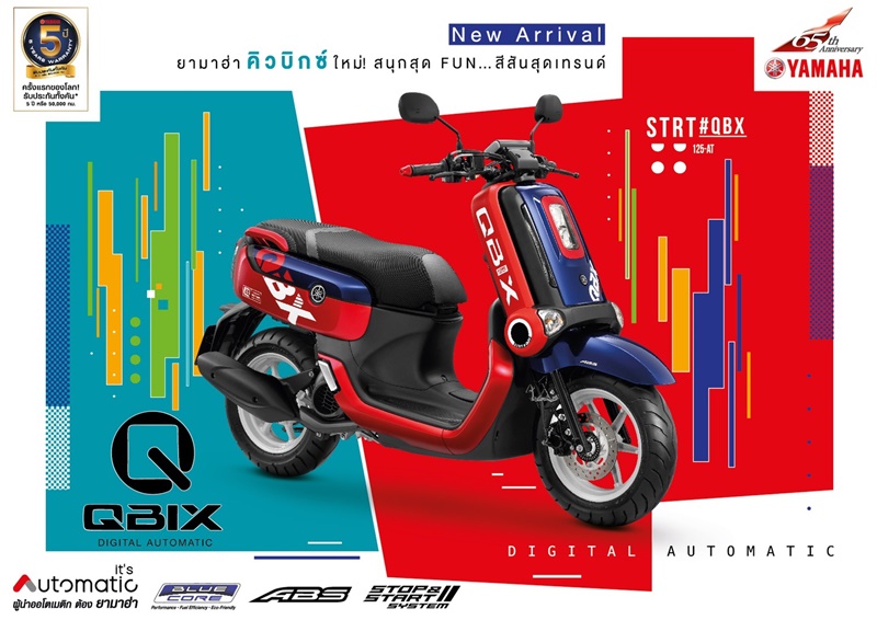 อกจากนี้ “ยามาฮ่า คิวบิกซ์ ใหม่” สนุกสุด FUN…สีสันสุดเทรนด์ ในรุ่น QBIX ABS ยังพร้อมให้ความเหนือระดับด้วย SMART KEY SYSTEM ระบบกุญแจอัจฉริยะแบบ Multi-Function สตาร์ทหรือดับเครื่องยนต์ ปลดล็อคแฮนด์รถ / ปลดล็อคเบาะ / ปลดล็อคหรือล็อคฝาถังน้ำมัน และเพิ่มความปลอดภัยในการหยุดรถด้วยระบบดิสก์เบรกหน้า พร้อมระบบ ABS SYSTEM ควบคุมแรงดันเบรกอัตโนมัติ ป้องกันล้อล็อค ควบคุมการขับขี่ได้อย่างมั่นใจ ล้อแม็ก 12 นิ้ว พร้อมหน้ายางกว้างพิเศษ 140 มม.* ที่ให้ทุกการขับขี่เต็มไปด้วยความมั่นใจแบบเหนือชั้น *เฉพาะในรุ่น QBIX ABS และ QBIX S เท่านั้น