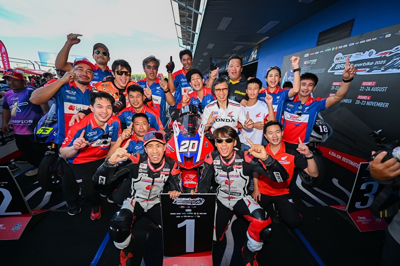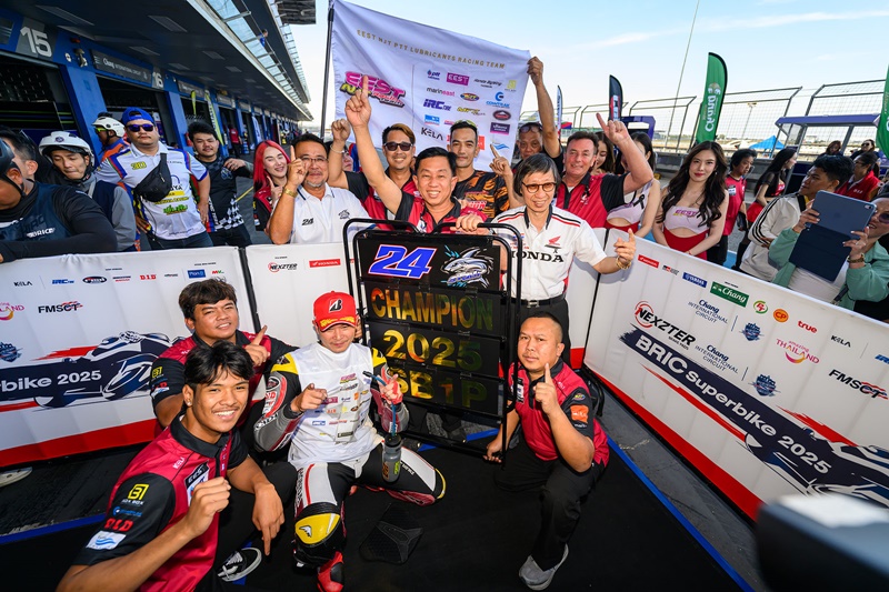 ศึกซูเปอร์ไบค์มาตรฐานโลก “เน็กซ์เตอร์ บีอาร์ไอซี ซูเปอร์ไบค์ แชมเปียนชิพ 2025” รูดม่านปิดฉากอย่างยิ่งใหญ่ ด้วยเกมการลุ้นแชมป์สุดมันส์ทุกรุ่นในเรซสุดท้าย โดย “มิกซ์” ธนัช ละอองปลิว นักบิดดาวรุ่งจาก อิเดมิตสึ ฮอนด้า ทีม คริสมาส เข้าวินส่งท้ายปี ขณะ “แสตมป์” อภิวัฒน์ วงศ์ธนานนท์ จาก อีสต์ เอ็นเจที เรซซิ่ง ทีม ผงาดแชมป์ประจำปีรุ่นใหญ่ ด้าน นธีธาร ทองโคตร จาก ยามาฮ่า ทีเอ็นพี พีทีที ลูบริแคนท์ส ทีม คว้าชัย ซูเปอร์สต็อกพร้อมครองแชมป์ประจำปี ส่วน ต่อศักดิ์ นวลสาย จาก ยามาฮ่า ทีเอ็นที พีทีที ลูบริแคนท์ส ครองบัลลังก์ ซูเปอร์สปอร์ต 600 ซีซี