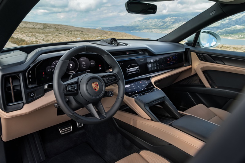 คาเยนน์ คูเป้ อิเล็กทริค นำเสนอประสบการณ์ Porsche Driver Experience เช่นเดียวกับในรุ่นเอสยูวี โดยมอบประสบการณ์ที่เน้นผู้ขับขี่และระบบดิจิทัลอย่างเต็มรูปแบบ โดดเด่นด้วยพื้นที่จอแสดงผลขนาดใหญ่ ประกอบด้วยมาตรวัดแบบดิจิทัลเต็มรูปแบบ จอกลาง Flow Display จอสำหรับผู้โดยสาร และจอแสดงผลข้อมูลบนกระจกหน้าแบบ AR เป็นอุปกรณ์เสริม ระบบควบคุมแบบดิจิทัลและอนาล็อกทำงานร่วมกันอย่างลงตัว พร้อมการจัดวางตามหลักสรีรศาสตร์เพื่อการใช้งานที่สะดวก พร้อมระบบ Porsche Digital Interaction มุ่งเน้นการปรับแต่งเฉพาะบุคคลและการใช้งานที่เข้าใจง่าย ผ่านวิดเจ็ตที่ปรับแต่งได้ ธีมหน้าจอที่เลือกได้ และการรองรับแอปพลิเคชันจากภายนอก เพื่อสร้างประสบการณ์การใช้งานที่เชื่อมต่อและปรับได้ตามความต้องการของผู้ขับขี่