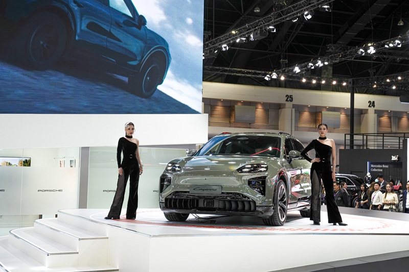 เอสยูวีไฟฟ้าอย่างเต็มรูปแบบรุ่นล่าสุด ครั้งแรกในเอเชียตะวันออกเฉียงใต้ โดยจัดแสดงคาเยนน์ เทอร์โบ อิเล็กทริค (Cayenne Turbo Electric) พร้อมด้วยรุ่นในตระกูลเดียวกันอย่าง คาเยนน์ เอส อี-ไฮบริด คูเป้ (Cayenne S E-Hybrid Coupé) รุ่นปรับโฉมปี 2026 ที่ประกอบในภูมิภาค