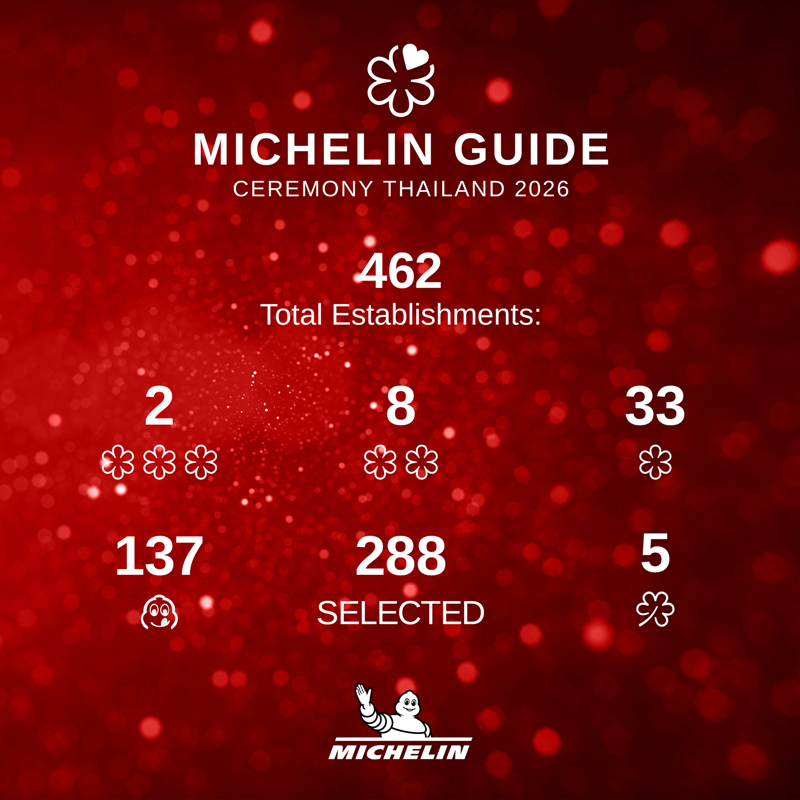 ในงานเปิดตัวคู่มือ ‘มิชลิน ไกด์’ ฉบับประเทศไทย ประจำปี 2569 (The MICHELIN Guide Thailand 2026) มิชลินได้ประกาศรายชื่อร้านอาหารที่คว้ารางวัล ‘ดาวมิชลิน’ และรางวัลพิเศษอื่น ๆ โดยคู่มือฉบับนี้บรรจุรายชื่อร้านอาหารที่ผ่านการคัดสรรรวมทั้งสิ้น 468 แห่ง เป็นร้านที่ได้รับรางวัล ‘สามดาวมิชลิน’ 2 ร้าน (เลื่อนระดับจาก ‘สองดาวมิชลิน’ 1 ร้าน), ‘สองดาวมิชลิน’ 8 ร้าน (เลื่อนระดับจาก ‘หนึ่งดาวมิชลิน’ 2 ร้าน), รางวัล ‘หนึ่งดาวมิชลิน’ 33 ร้าน (ติดอันดับครั้งแรก 3 ร้าน และเลื่อนระดับจาก MICHELIN Selected 4 ร้าน), รางวัล ‘บิบ กูร์มองด์’ 137 ร้าน (ติดอันดับครั้งแรก 13 ร้าน) และร้านแนะนำ หรือ MICHELIN Selected อีก 288 ร้าน (ติดอันดับครั้งแรก 50 ร้าน)
