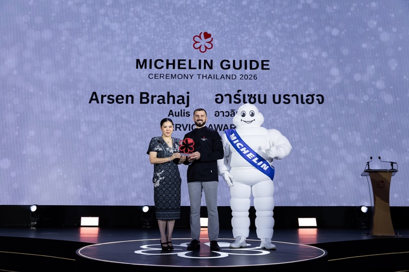 MICHELIN Guide Service Award เป็นรางวัลที่ได้รับการสนับสนุนโดยการท่องเที่ยวแห่งประเทศไทย มอบให้สุดยอดบุคลากรของร้านอาหารที่ทุ่มเทให้กับการบริการเพื่อให้ลูกค้าได้สัมผัสประสบการณ์การทานอาหารที่ยอดเยี่ยม สำหรับผู้ได้รับรางวัลประจำปี 2569 คือ อาร์เซน บราเฮจ (Arsen Brahaj) ผู้จัดการร้าน ‘อาวลิส’ ร้านระดับ ‘หนึ่งดาวมิชลิน’ ในจังหวัดพังงา