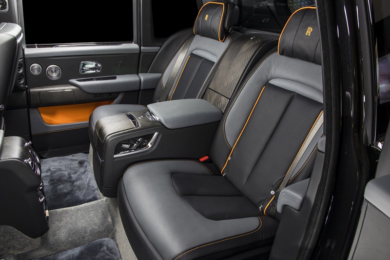 คัลลิแนน อัลตราลักชัวรี่เอสยูวีรุ่นแรกในประวัติศาสตร์ของ โรลส์-รอยซ์ เตรียมจัดแสดงให้ยลโฉมกันอย่างใกล้ชิด ตัวถังดูสุขุมและสง่างามกับสีพิเศษ ‘Infinity-Black Metallic’ ตัดด้วยโค้ชไลน์สี Mandarin เป็นเส้นสีส้มบางๆ คาดข้างตัวถังยาวจรดด้านหลัง เป็นเสมือนงานศิลป์จากปลายพู่กันของ มร. มาร์ค คอร์ต โดยเป็นคนเดียวในโลกกับหน้าที่สุดพิเศษนี้