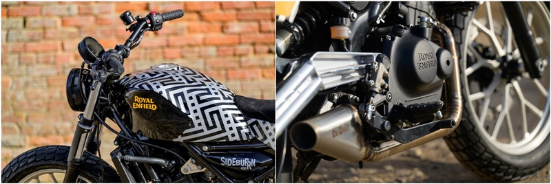 ชื่อ “Modern Primitive” มาจากหนังสือที่มีอิทธิพลอย่างมากเกี่ยวกับรอยสักและการดัดแปลงร่างกายในยุค 1980s คำว่า Modern สื่อถึง Royal Enfield Guerrilla 450 ที่เป็นรถรุ่นใหม่ ส่วนคำว่า Primitive สื่อถึงการปรับโฉมให้เป็น Street Tracker ที่เรียบง่ายและแสดงออกถึงแก่นแท้ของรถมอเตอร์ไซค์มากยิ่งขึ้น ตัวถังและท้ายอะลูมิเนียมที่สร้างขึ้นใหม่โดย Coba Valley Cycles พร้อมงานเพ้นท์อันเป็นเอกลักษณ์ และเบาะหนัง Alcantara จาก Holy Goat ที่ทำให้รถคันนี้ดูดิบแต่ก็มีสไตล์อย่างไม่น่าเชื่อ