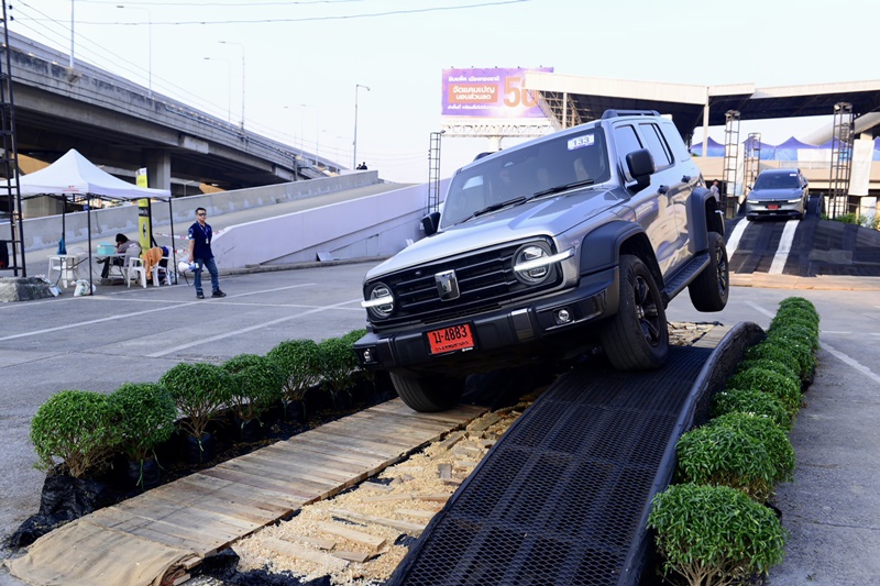 ส่วนภายนอกอาคาร มีสนามจำลองสถานการณ์วิบาก ให้ทดลองนั่งรถ 4×4 ที่ขับโดยผู้เชี่ยวชาญ ผู้สนใจสามารถสอบถาม และลงทะเบียนได้ที่บูธ โรงเรียนพัฒนาทักษะการขับขี่รถขับเคลื่อน 4 ล้อ
