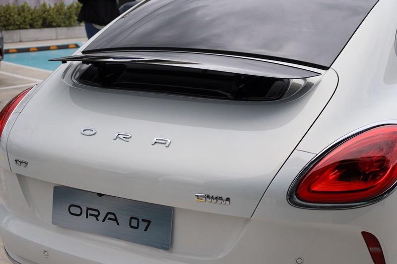 ORA 07 ทุกรุ่นยังคงเน้นดีไซน์สปอร์ตคูเป้ ออกแบบให้โฉบเฉี่ยว โดดเด่นเหนือใคร โดย ORA 07 รุ่น LONG RANGE ULTRA มีความแตกต่างแบบเฉพาะด้านไม่เหมือนใคร ในด้านความปราดเปรียวด้วยสปอยเลอร์หลังไฟฟ้า ที่ไม่เพียงแต่จะช่วยให้ดีไซน์ของรถมีความเป็นเอกลักษณ์ ผสมผสานความสปอร์ตและความสง่างามได้อย่างลงตัว แต่ยังช่วยเพิ่มแรงกดที่ส่วนท้ายของรถ ทำให้รถสามารถยึดเกาะถนนได้เป็นอย่างดี สร้างความสมดุลและความปลอดภัยให้กับรถในขณะที่มีการขับขี่ด้วยความเร็วสูง นอกจากนี้สปอยเลอร์หลังไฟฟ้ายังมาพร้อมกับฟังก์ชันเปิด-ปิดอัตโนมัติ ที่สามารถตั้งให้เปิดเมื่อปลดล็อกรถ หรือเมื่อความเร็วถึง 70 กิโลเมตรต่อชั่วโมง เพิ่มความปลอดภัยและความมั่นใจให้แก่ผู้ขับขี่ถึงแม้จะขับขี่ด้วยความเร็วสูง